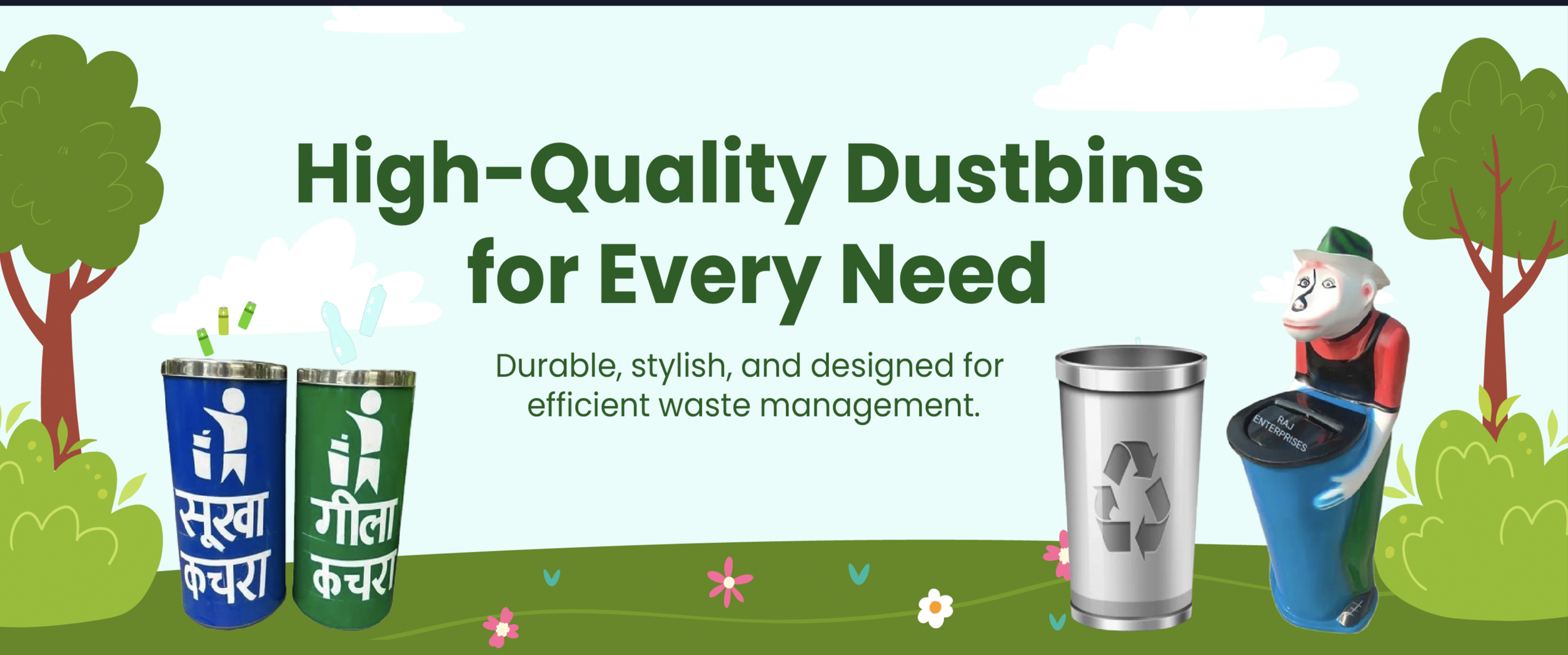 Raj Enterprises was born to offer a durable and strudy range of dustbins for use in several places from homes to offices, banks, malls, super markets, airports, schools, and many other. We started our business of manufacturing dustbins in 2010 and since then, we have been passionately making and supplying a wide range of products including Metal Mesh Dustbin, Stainless Steel Pole Dustbin, Airport Trio Steel Dustbin, 2 In 1 Fibre Duo Dustbin, Wet And Dry Waste Metal Dustbin, and more.